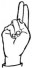 На ћирилици написано БОГОСЛАВА АЛЕКСИЋ састоји се из 16 слова [?]. Исписано ћириличном једноручном азбуком за глувонеме: